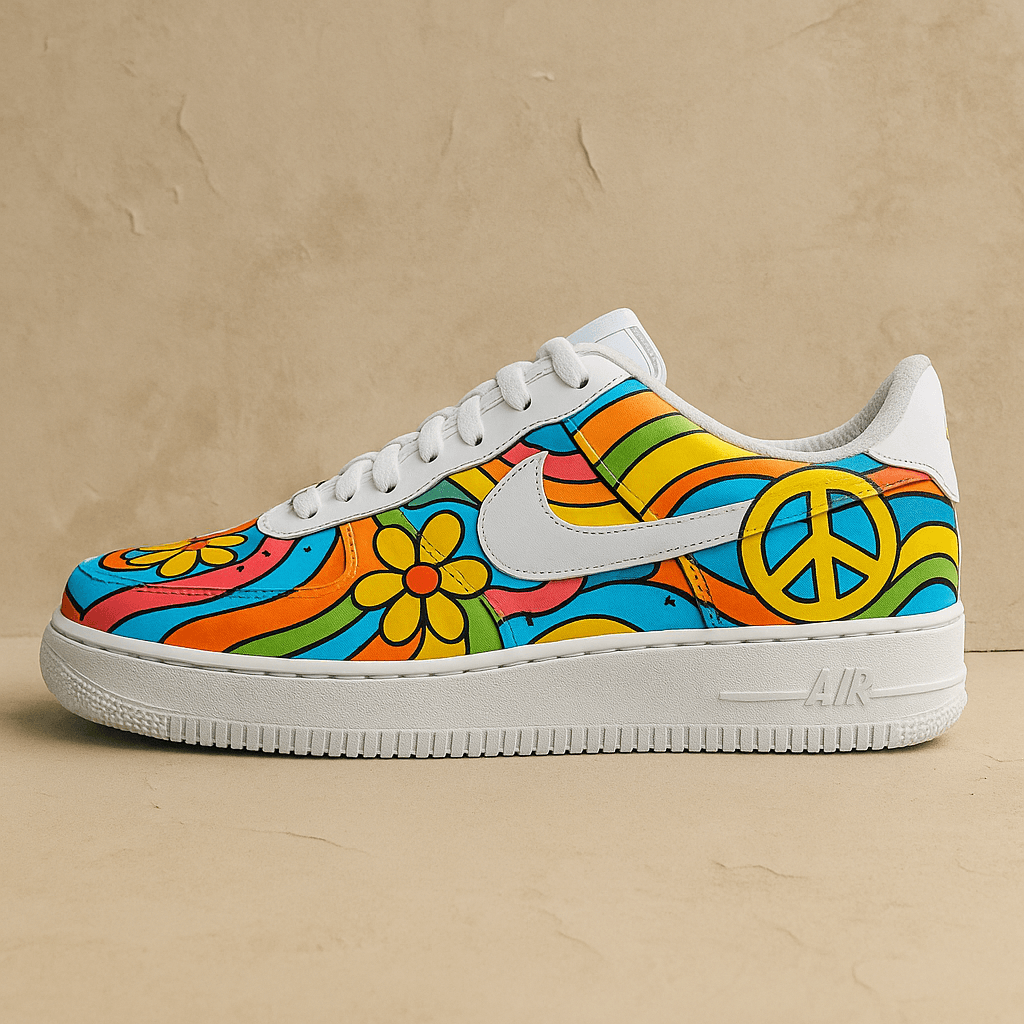 Tra onde cromatiche, fiori e simboli di pace, ogni linea racconta la voglia di vivere fuori dagli schemi e scegliere la gentilezza.