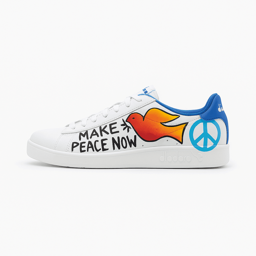 Questa scarpa non racconta una pace da cartolina, ma una pace reale — piena di errori, lotte, e desiderio di rinascita.