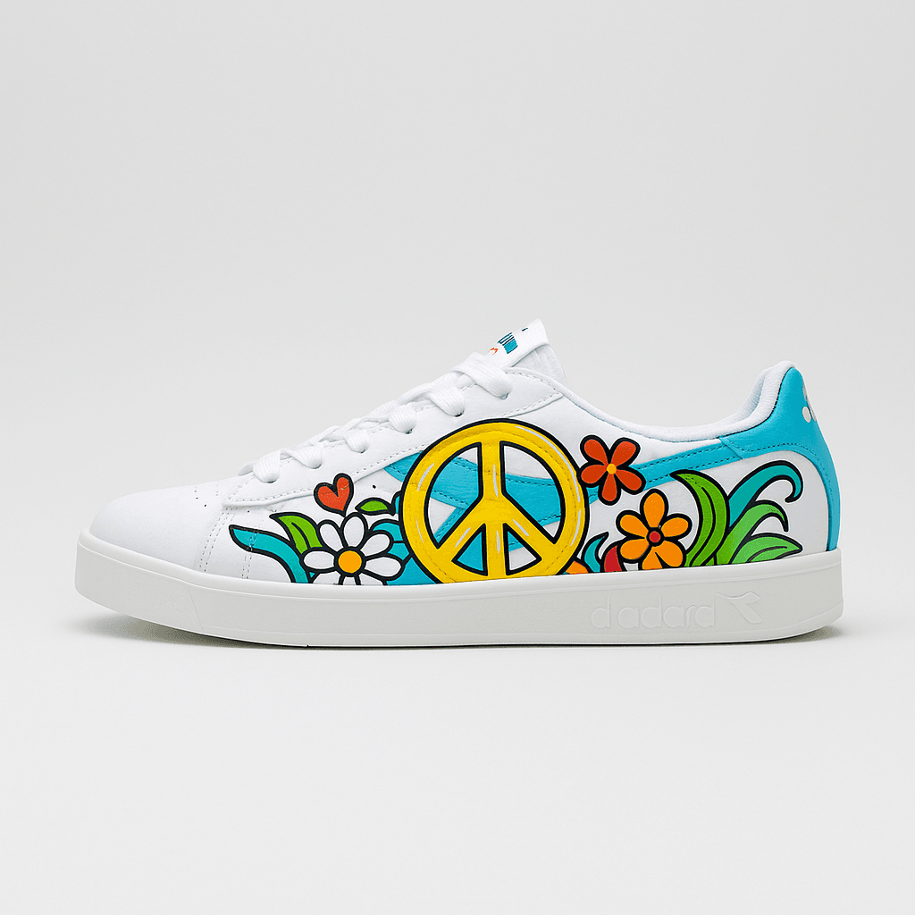 Il logo diventa parte del messaggio, il tallone si tinge di futuro, mentre il resto della scarpa resta volutamente pulito: per dare spazio all’intenzione, non al rumore.